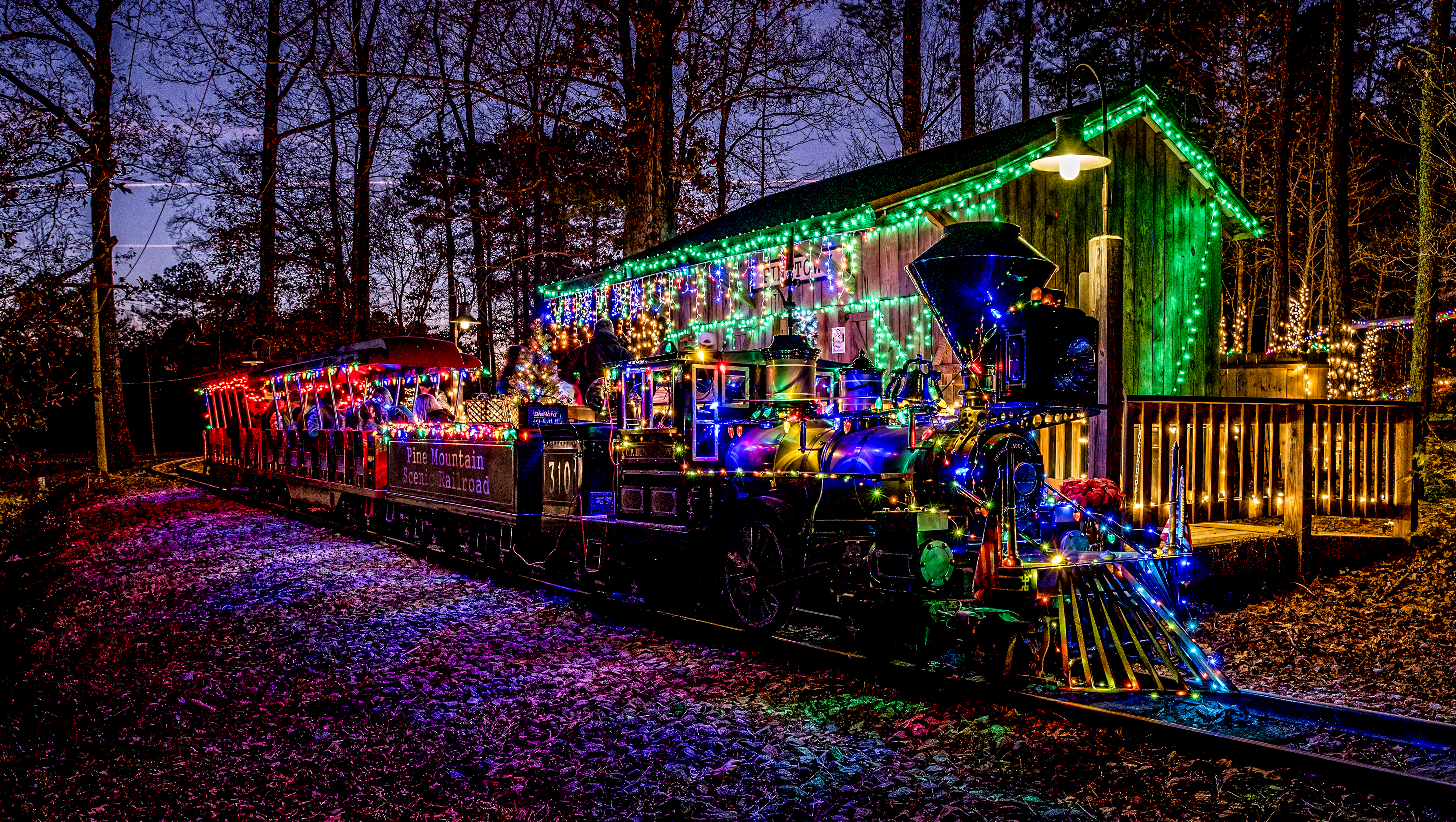 See more than 4 miles of lights with more than 52,000 individual points of light as you ride through the forest aboard the Pine Mountain Scenic Railroad. Tickets required for the train. Listen to music, shop for gifts, and treat yourself to delicious food.